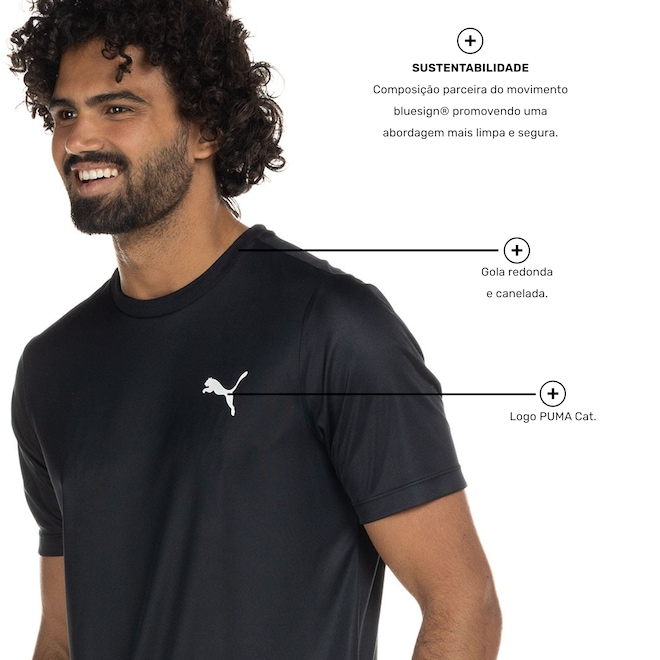 Para usar durante os treinos, a Camiseta Puma Manga Curta Active Small Logo é a pedida certa.