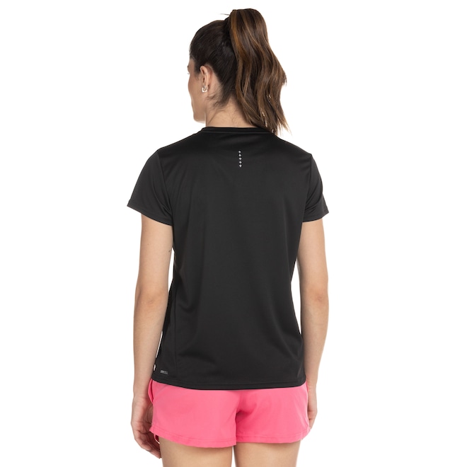 A camisa feminina possui mangas curtas e gola careca que oferecem o máximo conforto.