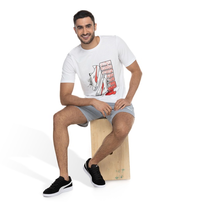 Ainda conta com tecido em algodão para máximo conforto e sua gola é careca, canelada e tem tira interna que protege do atrito junto à pele. Compre já a camiseta Sneaker Graphic!
