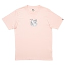 Camiseta básica Quiksilver com tecido em malha de algodão cardado, silk na parte frontal e etiqueta personalizada aplicada na barra da manga.