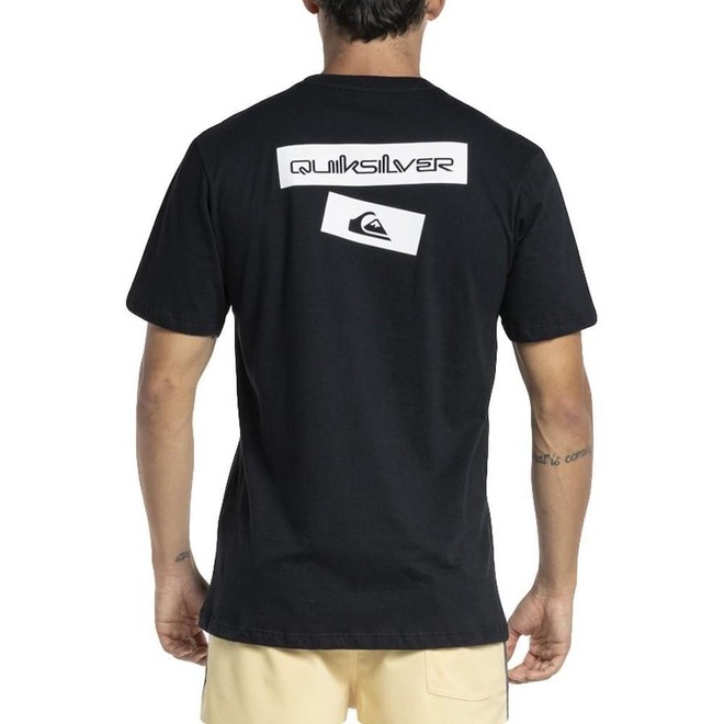Camiseta básica Quiksilver meia malha 30.1 cardada, silk frente e costas, modelagem regular e etiquetas personalizadas.