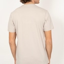 Camiseta QuikSilver feita em modelagem regular, meia malha, estampa aplicada na frente e etiqueta da marca aplicada próximo a barra do lado esquerdo de quem veste.