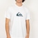 Camiseta QuikSilver feita em modelagem regular, meia malha, estampa aplicada na frente e etiqueta da marca aplicada próximo a barra do lado esquerdo de quem veste.