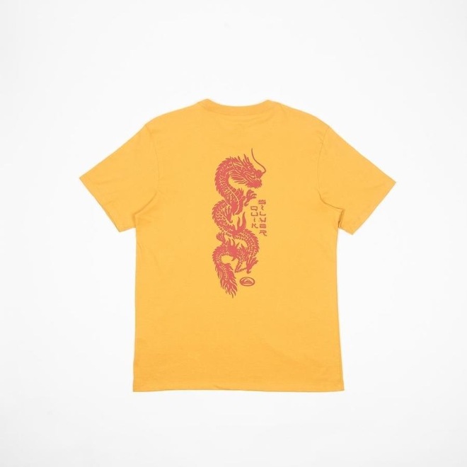 Camiseta QuikSilver feito em meia malha 30.1, silk com 1 cor centralizado na frente e silk com 1 cor centralizado nas costas e etiqueta da marca aplicada na manga esquerda de quem veste.