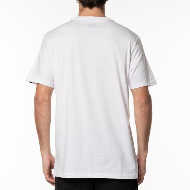 Camiseta básica Quiksilver com meia malha penteada, silk frontal, modelagem regular e etiquetas personalizadas.