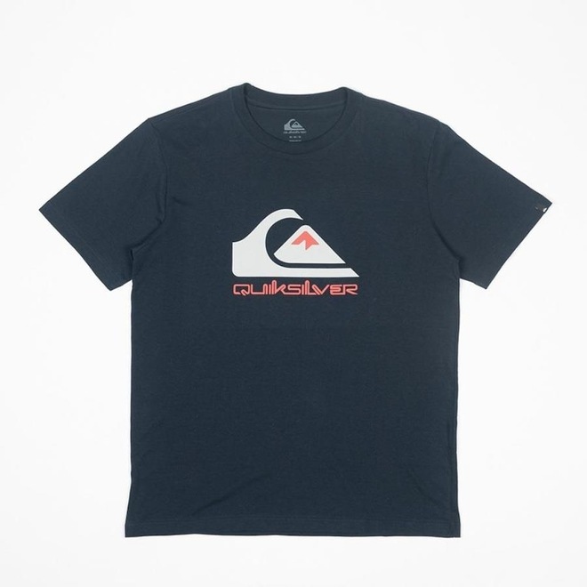 Camiseta QuikSilver básica, meia malha penteada, silk na parte frontal, modelagem regular e etiquetas personalizadas.