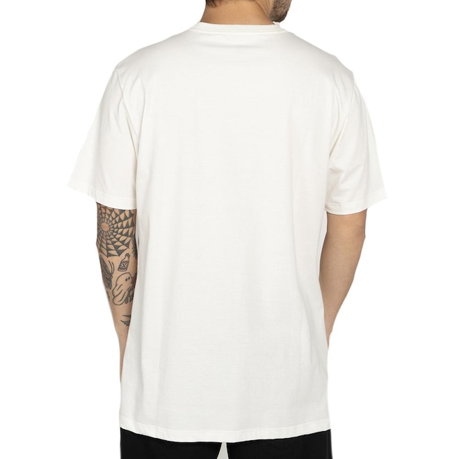 Camiseta QuikSilver feita em modelagem regular, meia malha, estampa aplicada na frente e etiqueta da marca aplicada na manga do lado esquerdo de quem veste.