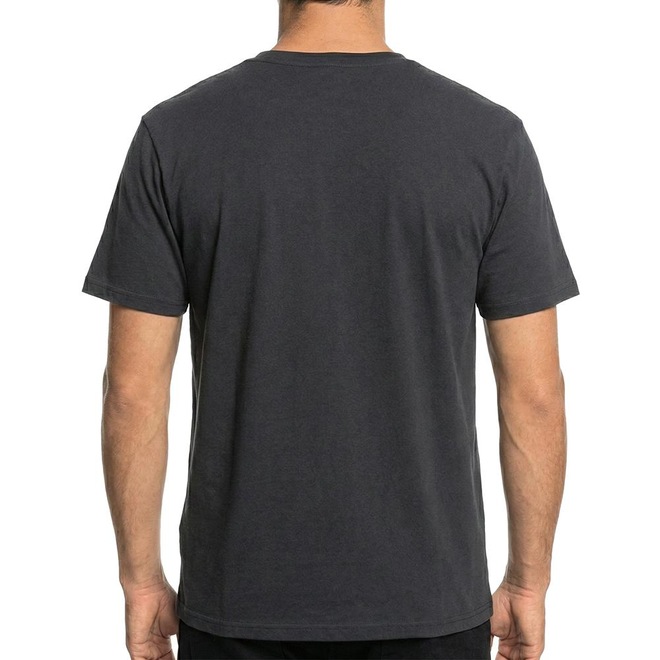 Camiseta QuikSilver feita em modelagem regular, meia malha penteada, estampa frontal e etiquetas personalizadas.