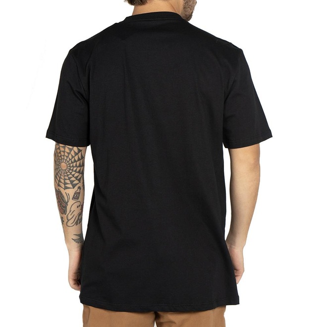 Camiseta QuikSilver feita em modelagem regular, meia malha, estampa frontal e etiqueta da marca aplicada na manga do lado esquerdo de quem veste.