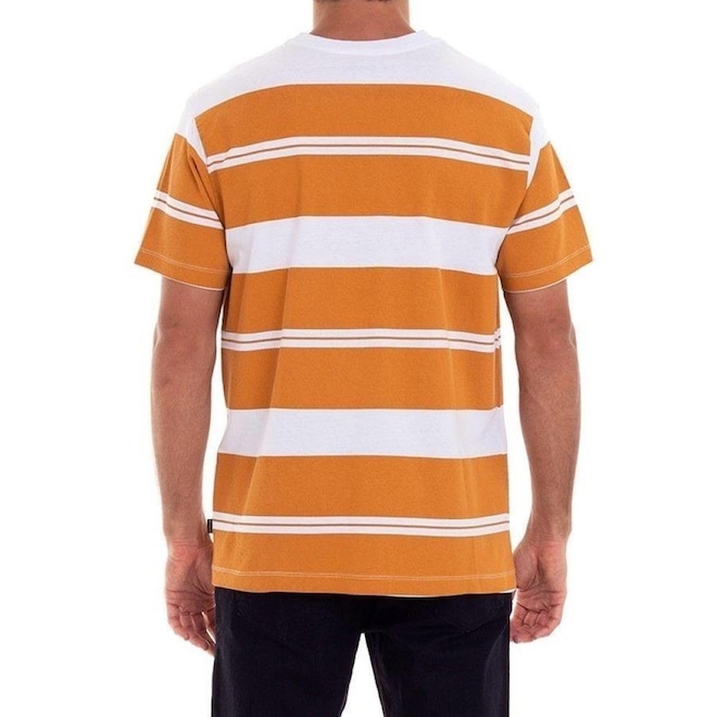 Camiseta Quiksilver Especial com modelagem regular, malha de algodão, listras em silk com lavanderia stone (sem toque), bordado com nome da marca centralizado na barriga e etiqueta personalizada.