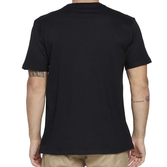 Camiseta QuikSilver feita em meia malha, silk metalizado em relevo centralizado na frente com 1 cor e etiqueta aplicada na manga esquerda de quem veste.