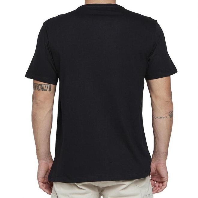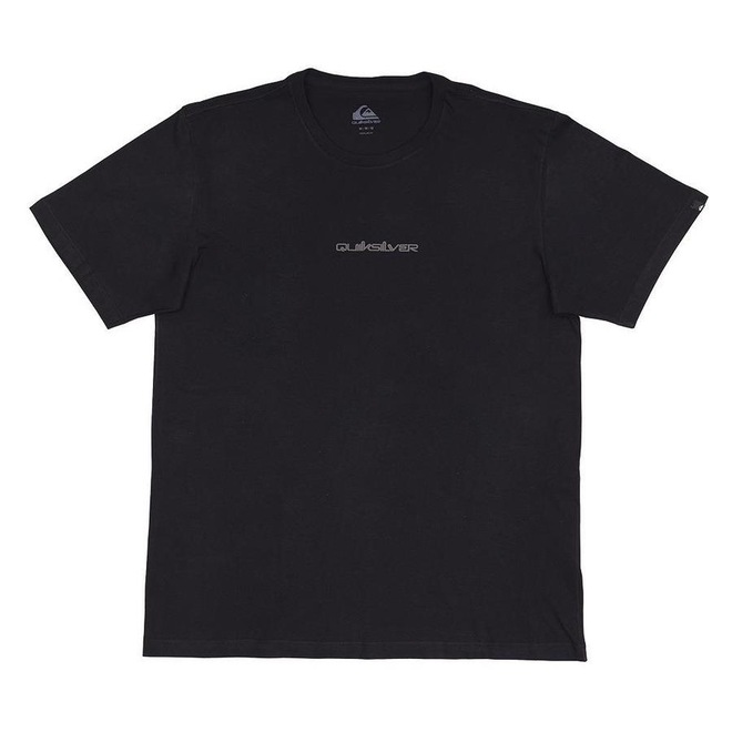 Camiseta QuikSilver feita em meia malha, silk em relevo 3D centralizado na frente com 1 cor e etiqueta aplicada na manga esquerda de quem veste.