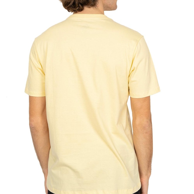 Camiseta QuikSilver feita em modelagem regular fit, meia malha penteada, estampa aplicada na frente e etiqueta da marca aplicada na manga do lado esquerdo de quem veste.