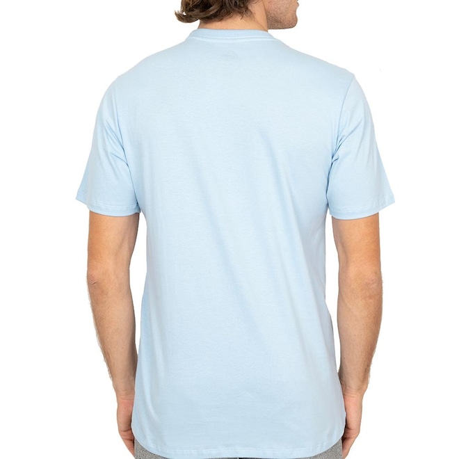Camiseta QuikSilver feita em modelagem regular, meia malha, estampa aplicada na frente e etiqueta da marca aplicada na manga do lado esquerdo de quem veste.