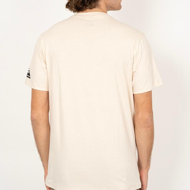Camiseta QuikSilver feita em modelagem regular, meia malha, estampa aplicada na frente e centro costas e etiqueta da marca aplicada na manga do lado esquerdo de quem veste.