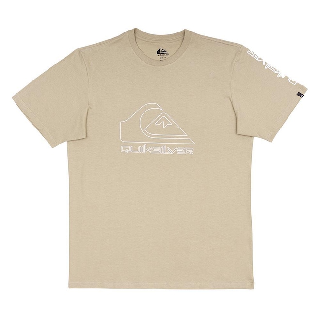 Camiseta QuikSilver feita em modelagem regular fit, meia malha, silk com 1 cor centralizado na frente e na manga equerda de quem veste e etiqueta aplicada na manga esquerda de quem veste.