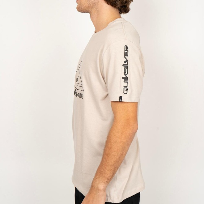 Camiseta QuikSilver feita em modelagem regular fit, meia malha penteada, estampa na largura total do tórax na frente e nas costas e etiqueta da marca na manga esquerda.