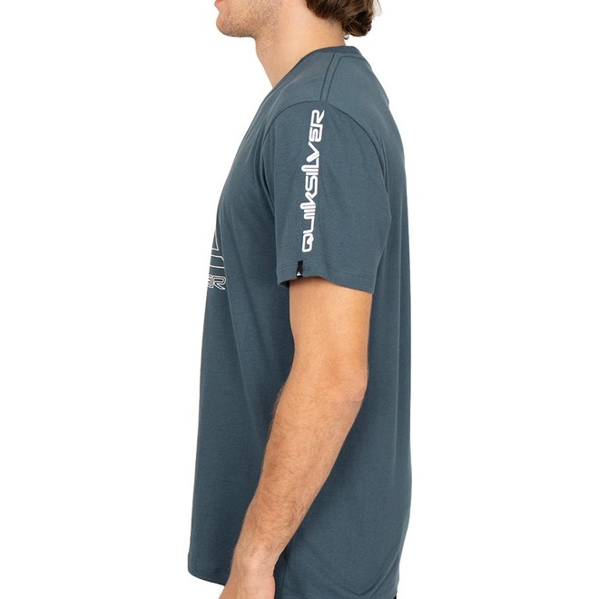 Camiseta QuikSilver feita em modelagem regular fit, meia malha penteada, estampa na largura total do tórax na frente e nas costas e etiqueta da marca na manga esquerda.