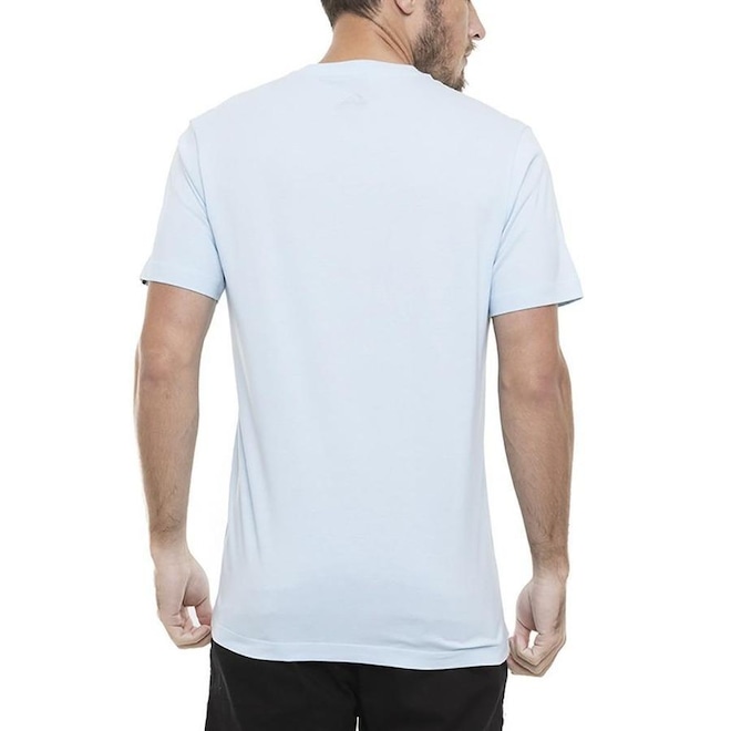 Camiseta básica Quiksilver com tecido em malha de algodão cardado, silk centralizado no peito e etiqueta personalizada aplicada na barra da manga.