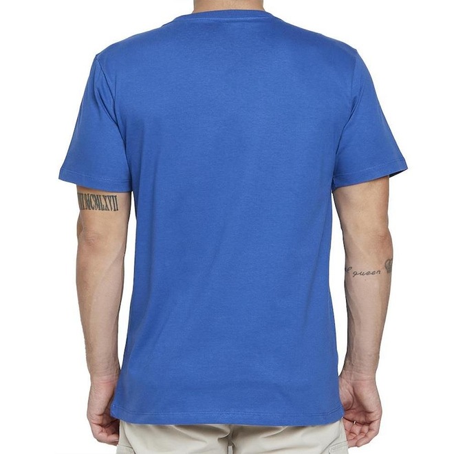 Camiseta QuikSilver feita em modelagem regular fit, meia malha, silk em relevo 3D centralizado na frente com 1 cor e etiqueta aplicada na manga esquerda de quem veste.