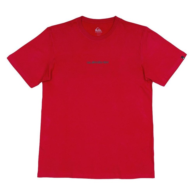 Camiseta QuikSilver feita em modelagem regular fit, meia malha, silk em relevo 3D centralizado na frente com 1 cor e etiqueta aplicada na manga esquerda de quem veste.