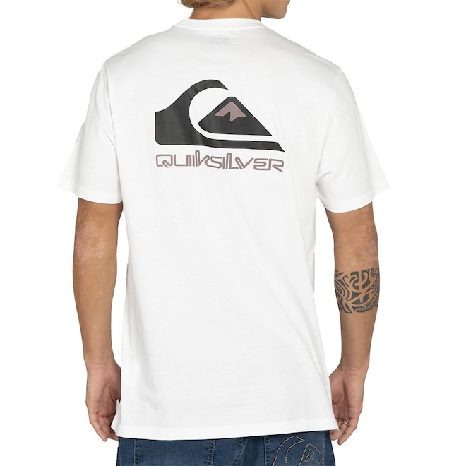 Camiseta QuikSilver feita em modelagem regular fit, meia malha penteada, possui estampa no peito e nas costas e etiqueta da marca na manga esquerda.