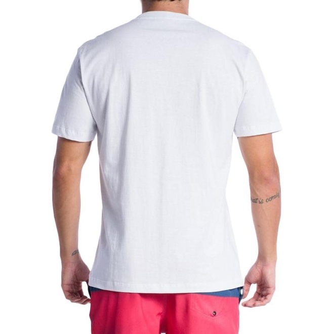 Camiseta Quiksilver básica, tecido em meia malha 30/1 fio cardada, silk frontal, etiqueta localizada na manga e etiquetas personalizadas.