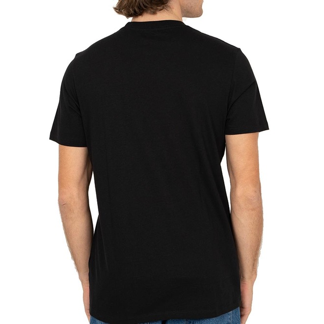 Camiseta QuikSilver feita em modelagem regular fit, meia malha, estampa aplicada na frente e centro costas e etiqueta da marca aplicada na manga do lado esquerdo de quem veste.