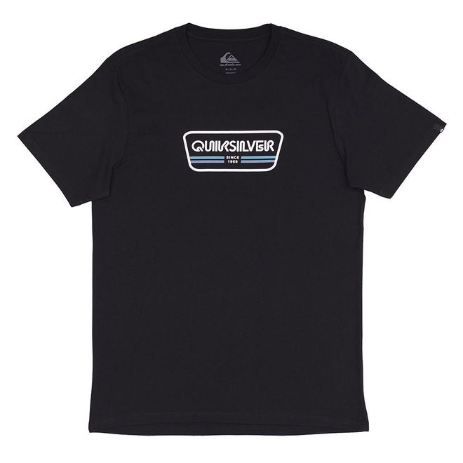 Camiseta QuikSilver feita em modelagem regular fit, meia malha, silk centralizado na frente com 3 core e etiqueta aplicada na manga esquerda de quem veste.