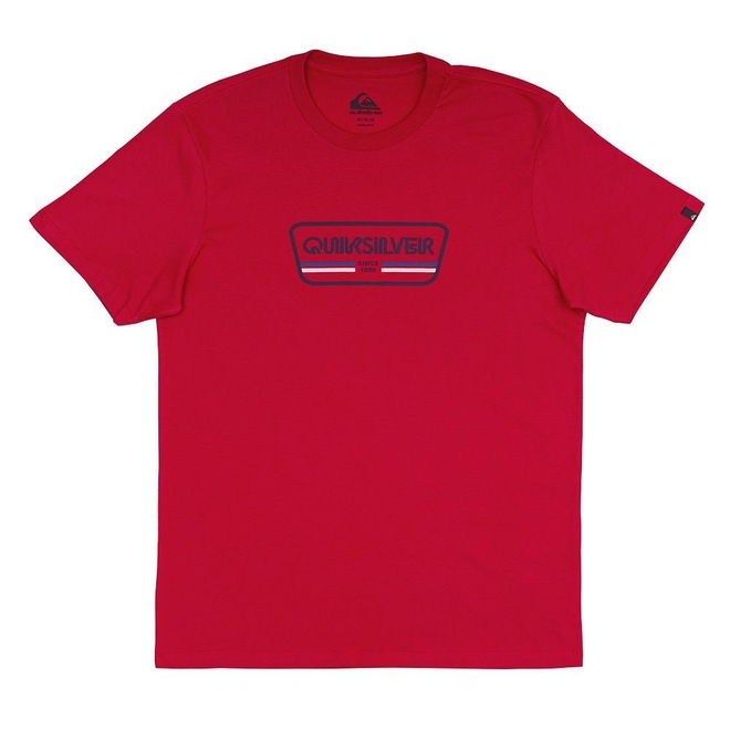 Camiseta QuikSilver feita em modelagem regular fit, meia malha. silk centralizado na frente com 3 cores e etiqueta aplicada na barra da manga esquerda de quem veste.