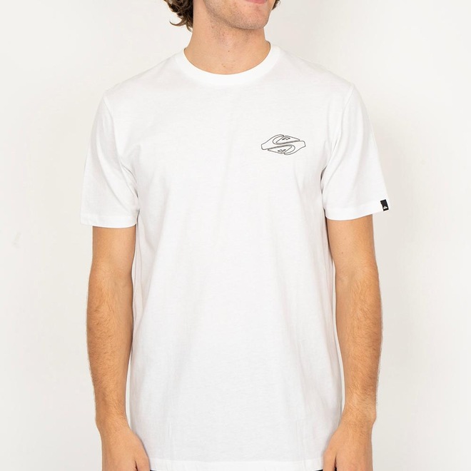 Camiseta QuikSilver feita em modelagem regular fit, meia malha, estampa aplicada na frente e etiqueta da marca aplicada na manga do lado esquerdo de quem veste.