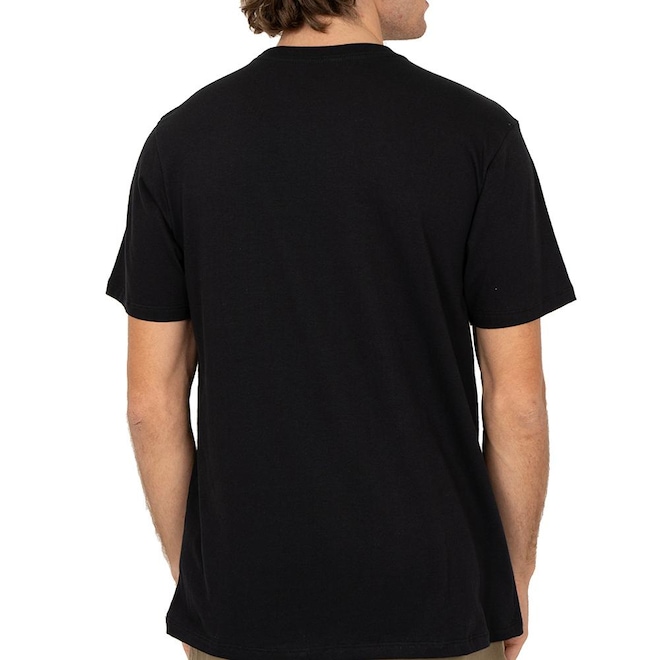 Camiseta QuikSilver feita em modelagem regular fit, meia malha penteada, estampa aplicada no peito e etiqueta da marca aplicada na manga do lado esquerdo de quem veste.