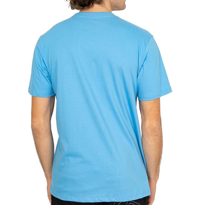Camiseta QuikSilver feita em modelagem regular fit, meia malha penteada, estampa aplicada no peito e etiqueta da marca aplicada na manga do lado esquerdo de quem veste.