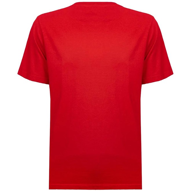 Camiseta QuikSilver feita em modelagem regular, meia malha, aplique degradê e de cor sólida impressos aplicados na frente, estampa-etiqueta aplicada na barra e etiqueta da marca aplicada na manga do lado esquerdo de quem veste.