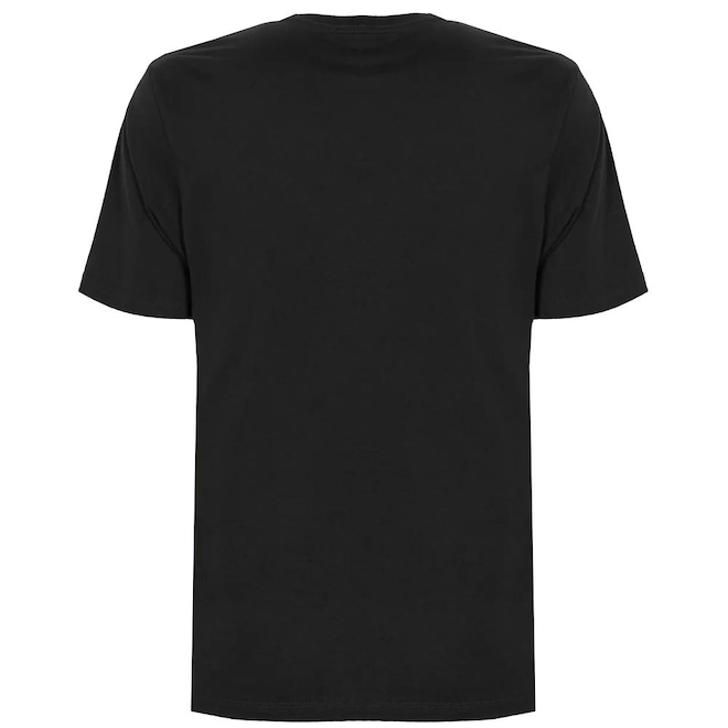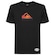 Camiseta QuikSilver feita em modelagem regular, meia malha, aplique degradê e de cor sólida impressos aplicados na frente, estampa-etiqueta aplicada na barra e etiqueta da marca aplicada na manga do lado esquerdo de quem veste.