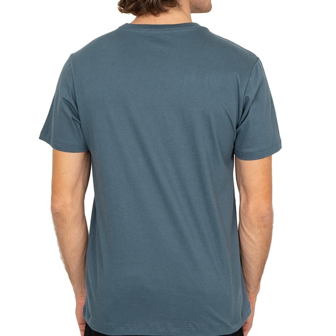Camiseta QuikSilver feita em modelagem regular fit, meia malha penteada, estampa aplicada na frente e centro costas e etiqueta da marca aplicada na manga do lado esquerdo de quem veste.