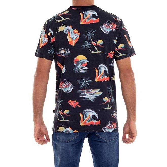 Camiseta Quiksilver Especial com modelagem regular, malha de algodão, etampa digital full print, etiqueta transfer aplicado no peito e etiqueta personalizada.