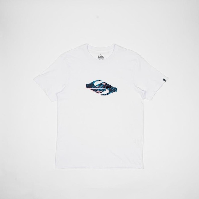 Camiseta Quiksilver feito em meia malha cardada, silk centralizado na frente 3 cores e etiquetas personalizadas.
