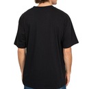 Camiseta QuikSilver feita em modelagem oversized, meia malha, estampa na frente e etiqueta da marca aplicada na lateral esquerda de quem veste.