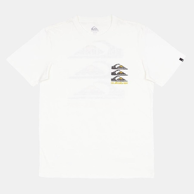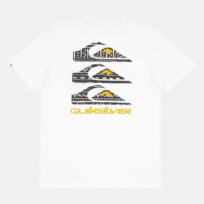 Camiseta QuikSilver feita em meia malha, silk localizado no peito e nas costas com 2 cores e etiqueta aplicada na manga esquerda de quem veste.