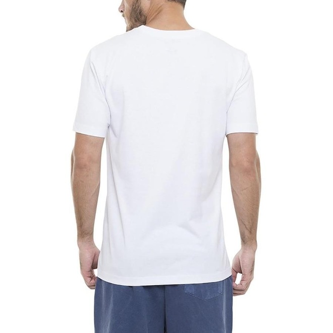 Camiseta básica Quiksilver com tecido em malha de algodão cardado, silk centralizado no peito e etiqueta personalizada aplicada na barra da manga.