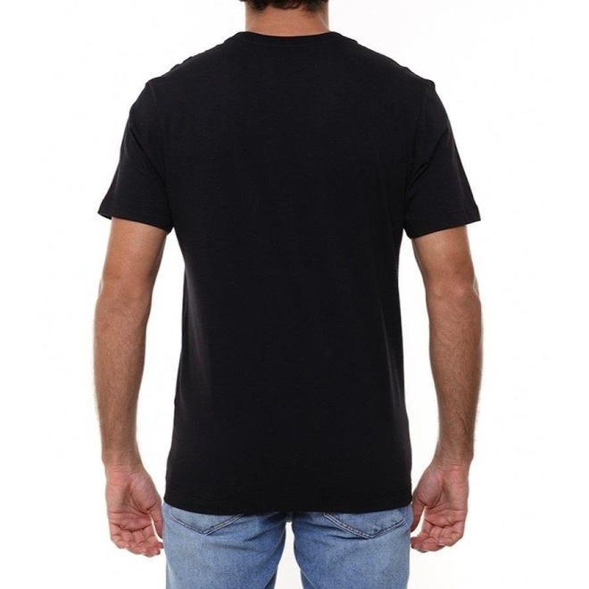 Camiseta básica em meia malha de fio penteado, modelagem regular e silk frontal.