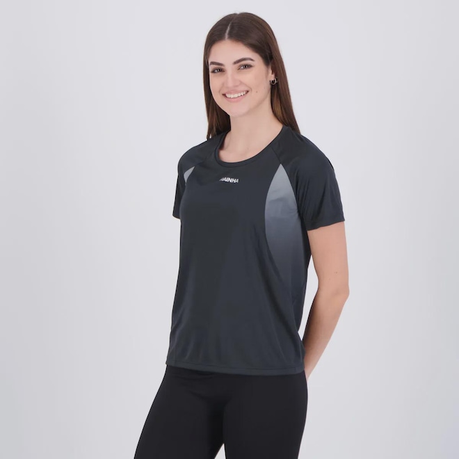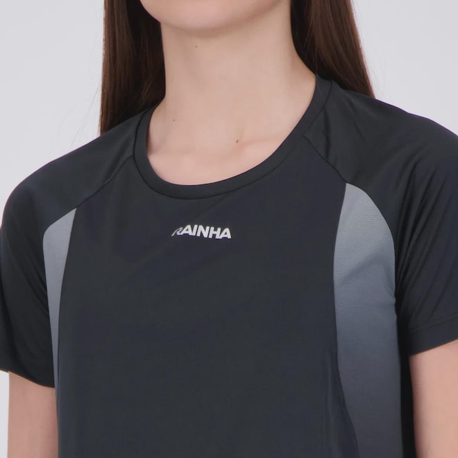 Composição: 100% Poliéster Cor predominante: Preto Indicado para: Treino Gênero: Feminino Origem: Nacional Logo: Estampada Manga: Curta Gola: Careca Dimensões aproximadas (A x L): M: 62 x 46 cm G: 64 x 48 cm
