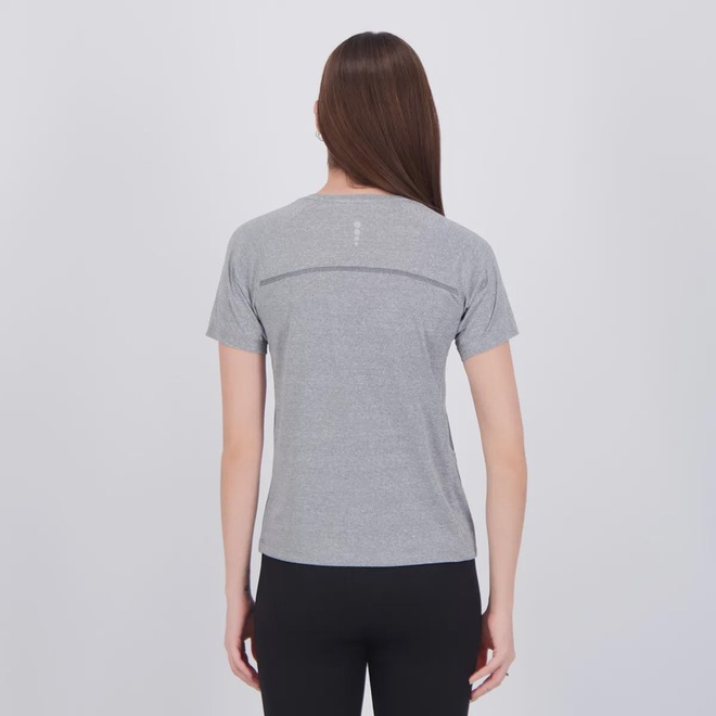 Composição: 100% Poliamida Cor predominante: Cinza Indicado para: Treino Bolsos: Sim, dois laterais Gênero: Feminino Origem: Nacional Logo: Estampada Manga: Curta Gola: Careca Dimensões aproximadas (A x L): P: 57 x 44 cm M: 59 x 46 cm G: 61 x 48 cm GG: 63 x 50 cm