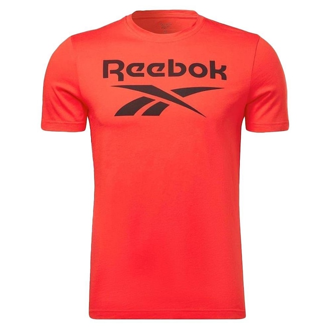 Camiseta Reebok de manga curta, construída em algodão e malha circula, com estampa frontal da marca e etiquetas personalizadas.