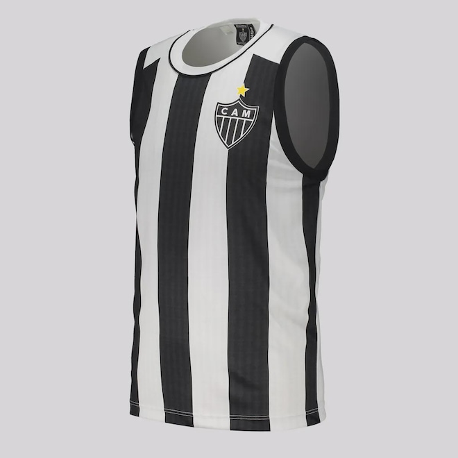 Composição: 100% PoliésterCor predominante: BrancaClube: Atlético MineiroIndicado para: CasualEscudo: EstampadoGênero: MasculinoOrigem: NacionalManga: RegataGola: CarecaDimensões aproximadas (A x L):P: 70 x 52 cmM: 72 x 54 cmG: 74 x 56 cmGG: 76 x 58 cm
