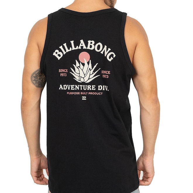 Regata Billabong feita em modelagem regular fit, meia malha penteada de algodão fio 30.1, estampa aplicada frente e costas e etiqueta da marca aplicada na lateral lado esquerdo de quem veste.