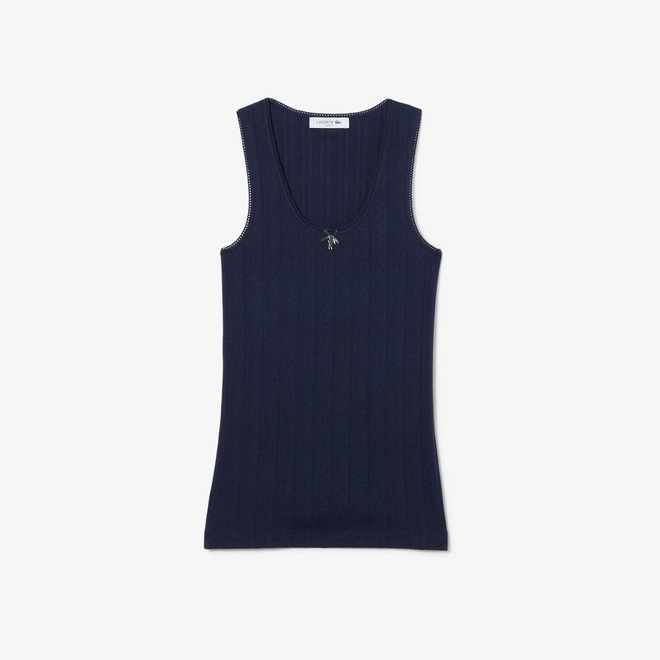 Essa regata da Lacoste, criadora de moda esportiva desde 1933, está repleta do estilo típico. Feita com tecido de malha Pointelle delicado, sutil, com textura fina, com detalhes de marca rendados em toda a peça. Uma peça feminina com detalhes de acabamento únicos, incluindo crocodilo de fita e metal.