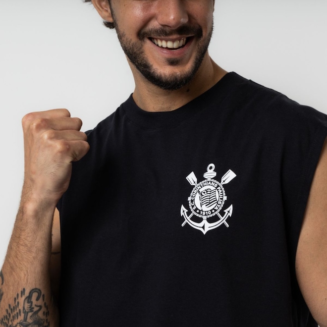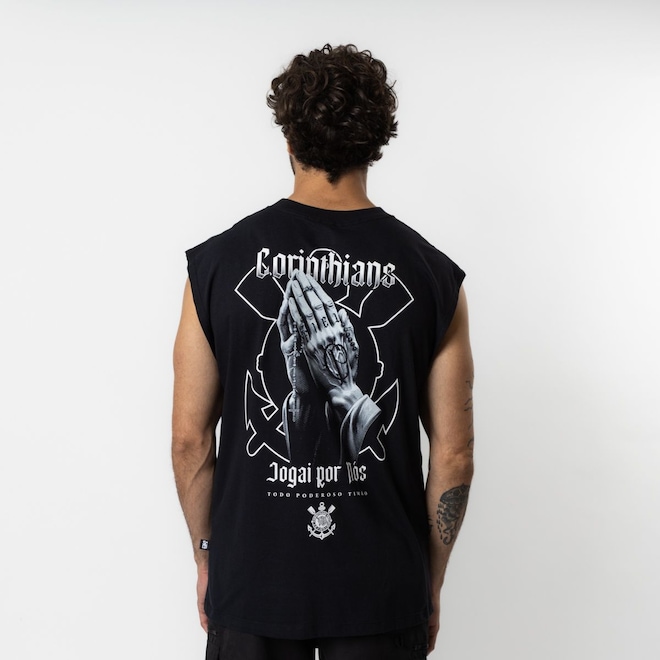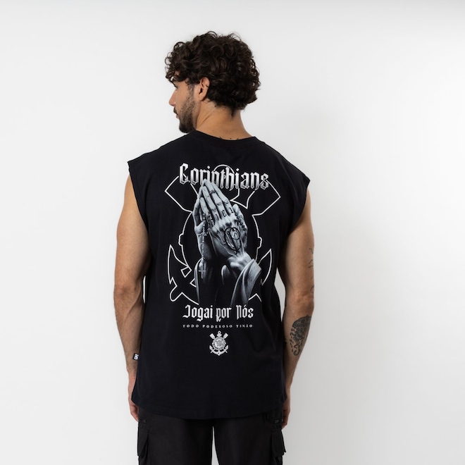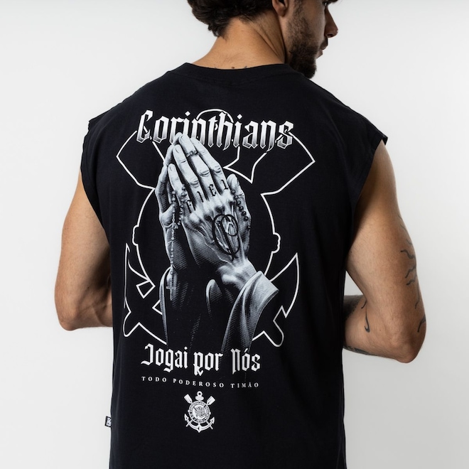 A Regata Masculina Corinthians "Jogai Por Nós" é produzida em meia malha 30.1, garantindo conforto no uso diário. O modelo segue o estilo machão, com acabamento em 100% algodão. Possui aplicação em silk na parte frontal e nas costas, trazendo detalhes que remetem ao clube.