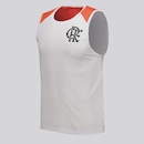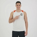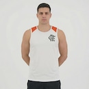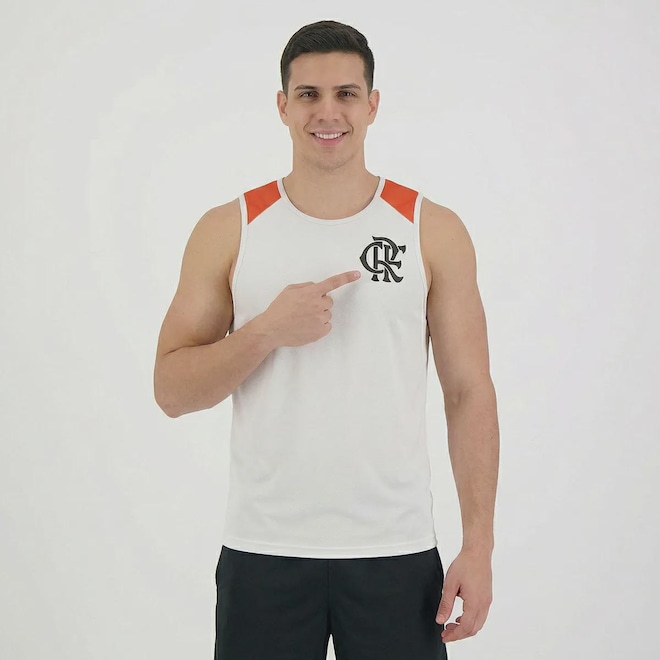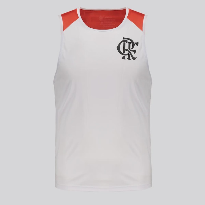 Composição: 100% Poliéster Cor predominante: Branca Indicado para: Casual Escudo: Estampado Gênero: Masculino Origem: Nacional Clube: Flamengo Manga: Regata Gola: Careca Dimensões aproximadas (A x L): P: 65 x 50 cm M: 68 x 52 cm G: 70 x 55 cm GG: 73 x 58 cm